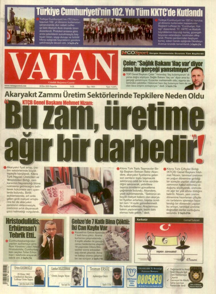 30 EKİM 2025 GAZETE MANŞETLERİ