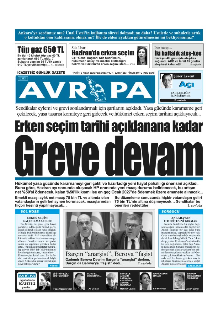 9 NİSAN 2026 GAZETE MANŞETLERİ