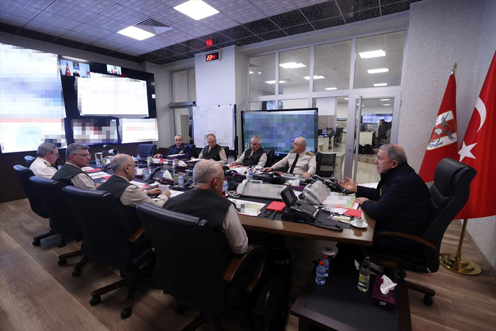Beraberindeki Genelkurmay Başkanı Orgeneral Yaşar Güler ve Kara Kuvvetleri Komutanı Orgeneral Musa Avsever ile sınır hattındaki birliklerin komutanlarıyla video konferans toplantısı gerçekleştiren Akar, sahadaki son duruma ilişkin brifing aldı ve talimatlar verdi.