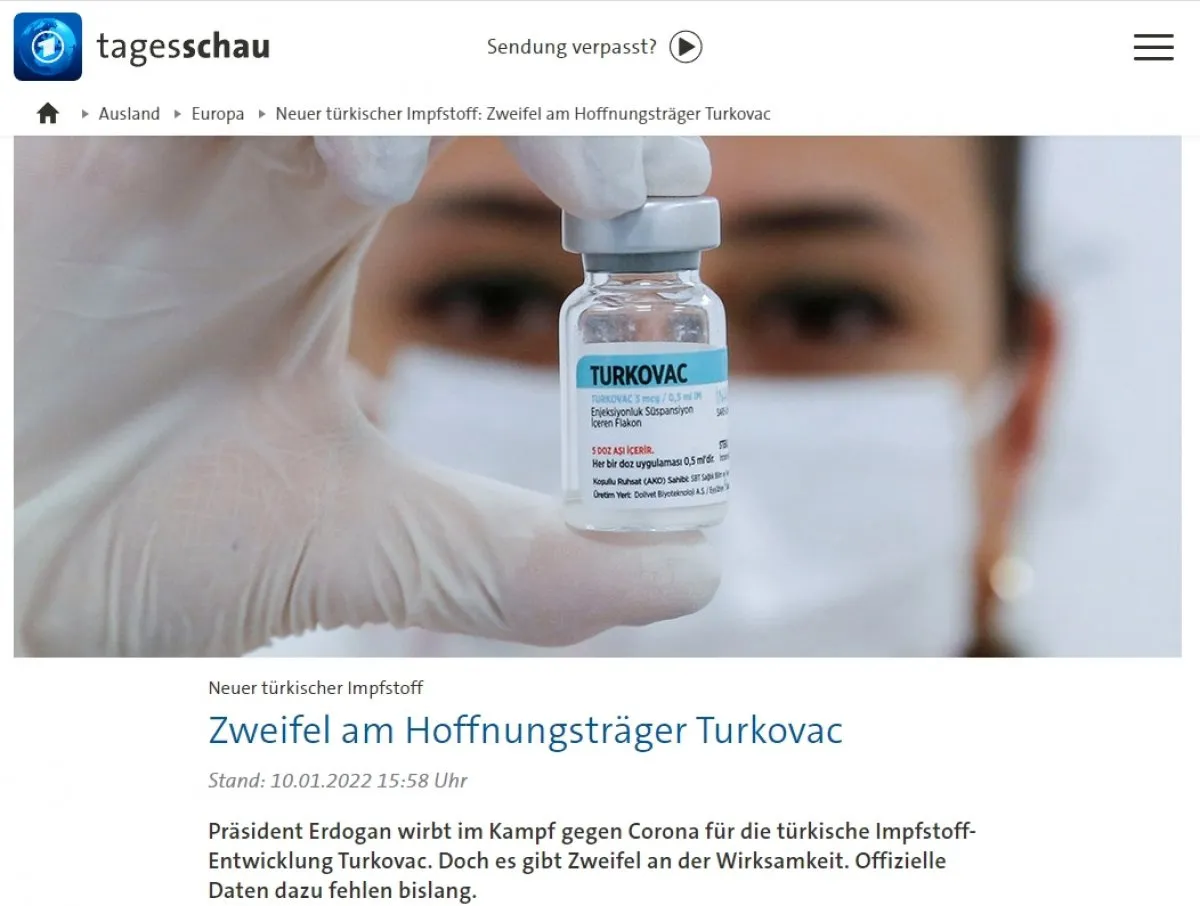 Yerli aşımızla ilgili verilerin hepsi bilimsel bir komisyon tarafından değerlendirilmesine ve onaylanmasına rağmen, siyasi amaçlarla karalama operasyonları başlatan Almanya’da Tagesschau gazetesi, aşısının etkisi hakkında şüpheler olduğunu yazdı.